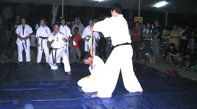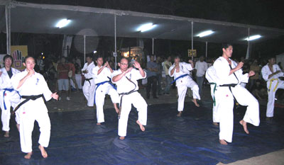 Beberapa aksi yang dilakukan adalah Kihon, kemudian dilanjutkan dengan Sanchin Kata untuk melatih pernafasan. Setelah itu Sensei Merisa I Messi memperlihatkan kehandalannya ketika diserang dalam street fighting oleh 4 orang dari 4 penjuru berbeda.
